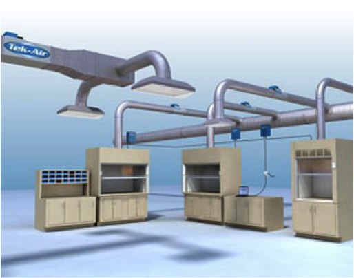 VAV系統(tǒng)是一種整體建筑通風(fēng)系統(tǒng),其中包含傳感器,可根據(jù)窗扇位置調(diào)節(jié)排氣和供氣(圖片由Tek-Air提供)。例如,如果一個(gè)人在通風(fēng)櫥里完成了他們當(dāng)天的工作,并且通風(fēng)櫥有一個(gè)VAV系統(tǒng),則關(guān)閉窗扇會(huì)啟動(dòng)一個(gè)自動(dòng)(和安全)的響應(yīng),關(guān)閉通向通風(fēng)櫥排氣的閥門,減少回火的空氣量。它還向供氣發(fā)送信號(hào),告訴它調(diào)低進(jìn)入實(shí)驗(yàn)室的空氣量。通過(guò)這個(gè)動(dòng)作,調(diào)節(jié)和耗盡的空氣量都降低了; 因此,當(dāng)窗扇降低時(shí),實(shí)驗(yàn)室可以節(jié)省能源!