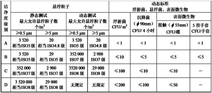 生產(chǎn)區(qū)的潔凈區(qū)分為A、B、C、D 4個(gè)級(jí)別,各個(gè)區(qū)域 潔凈度采納G際標(biāo)準(zhǔn)ISO 14644-1,明確占用狀態(tài)下不同關(guān)注粒徑時(shí)的**大濃度限值。